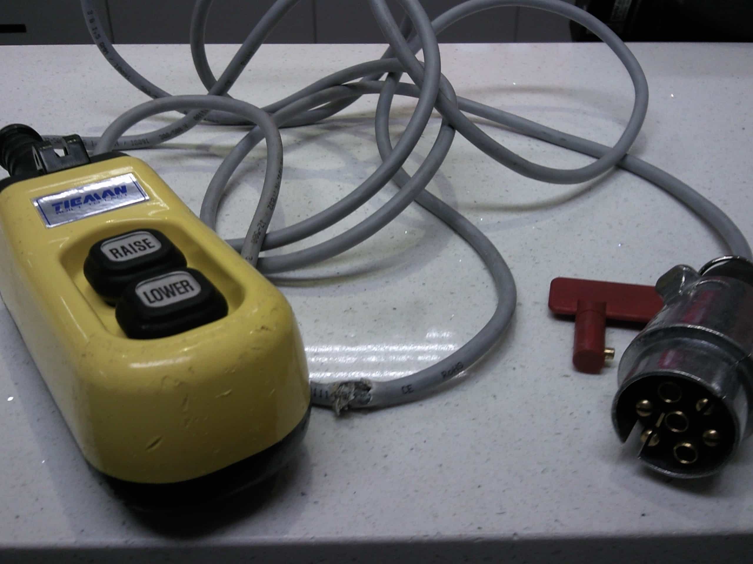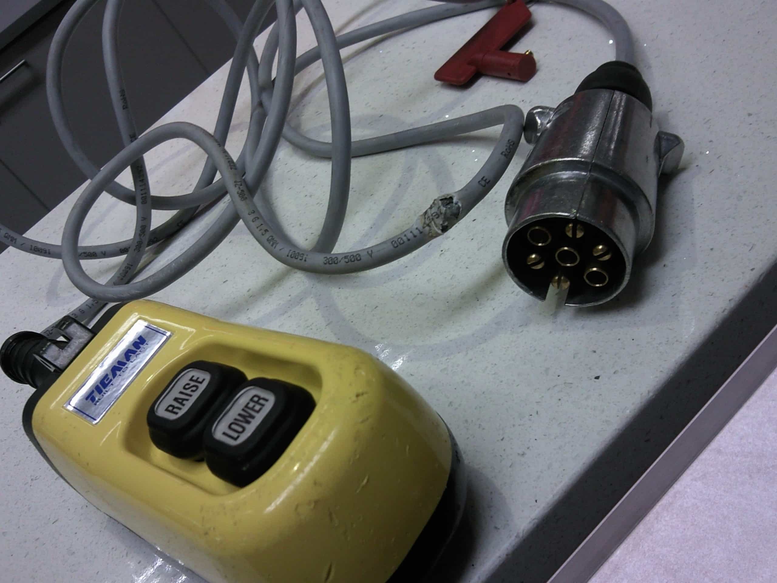 Unfortunately, during the unloading process, the remote control (for the hydraulic lift gate) got caught between the truck and the lift-gate and got severed. You can see the damage below.
